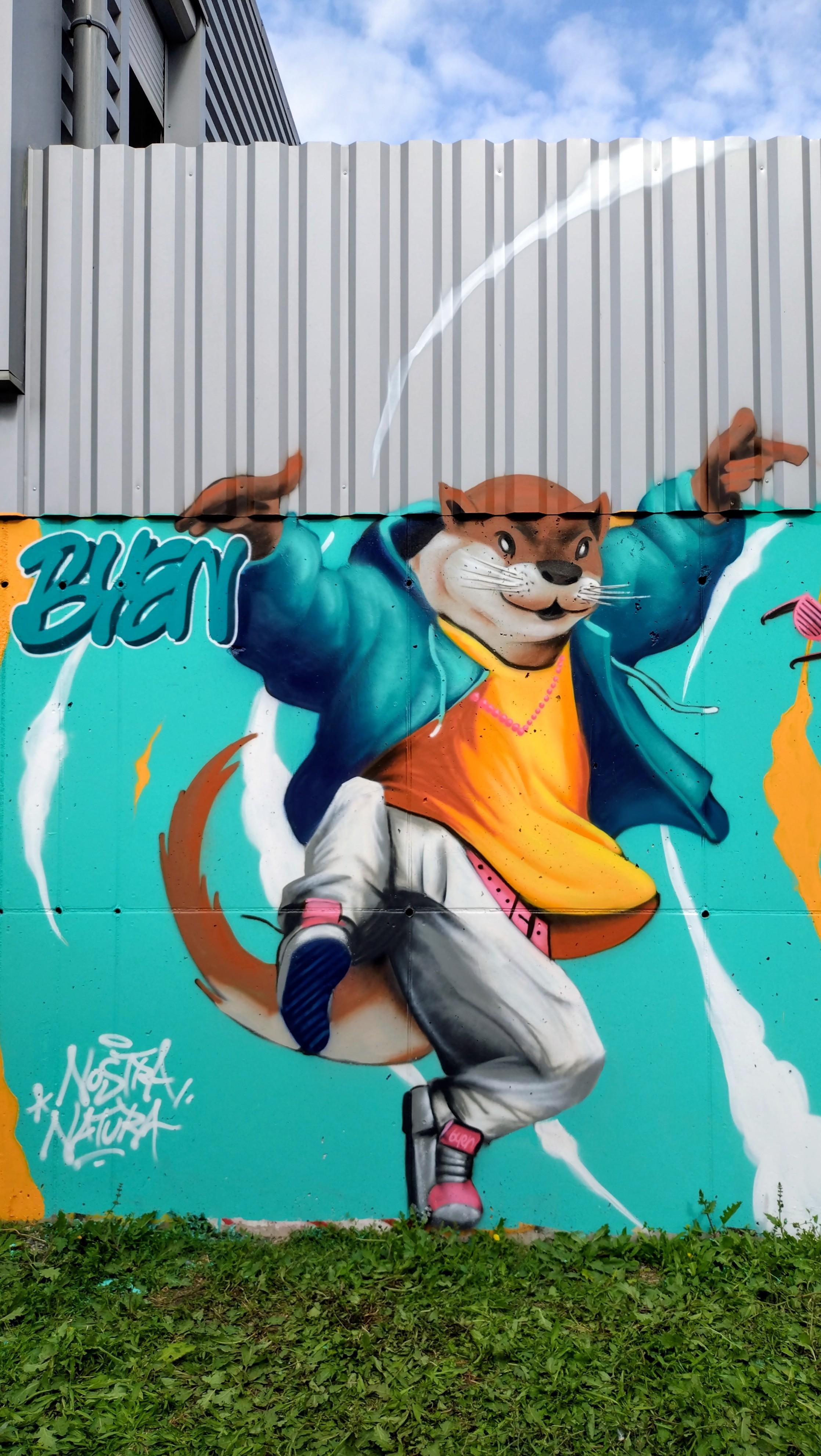 On y reconnaît la patte de Byen, Mite, Repy et Deft, qui ont mélangé leurs styles dans une composition magistrale : le bestiaire stylisé répond au portrait réaliste, tandis que les lettrages percutants ancrent l’œuvre dans une pure culture urbaine. Une rencontre au sommet qui fait vibrer le mur !