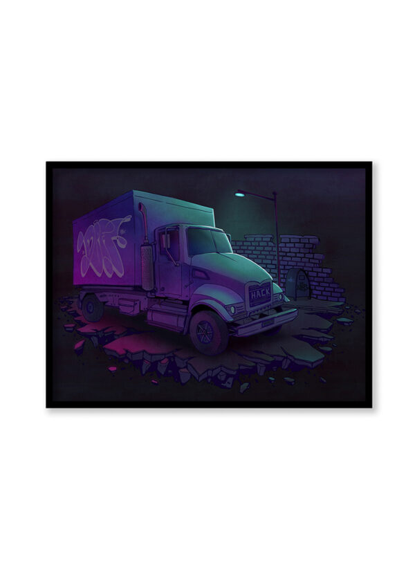 Illustration Brooklyn Truck. Affiche imprimée sur du papier 250g, format A3 (42 x 29,7 cm), et livrée dans un tube en carton (vendu sans cadre). Livraison gratuite en France métropolitaine.